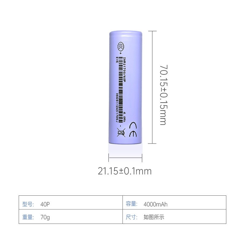 4000mAh Charge: 2.0A, 4.20V, CCCV 100mA cut-off Discharge: 0.8A, 2.50V DC cut-off |